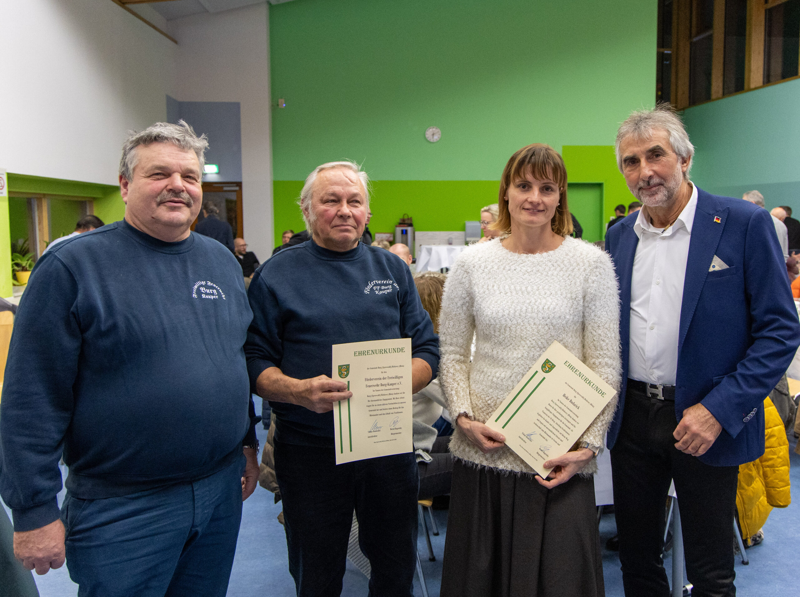 As every year, deserving members of the community received a certificate of honor. Bernd Ragotzky thanked Heike Budarick for her work in the children’s gymnastics group, Fritz Matschenz and Rolf Zimmermann from the Burg-Kauper fire department support association.